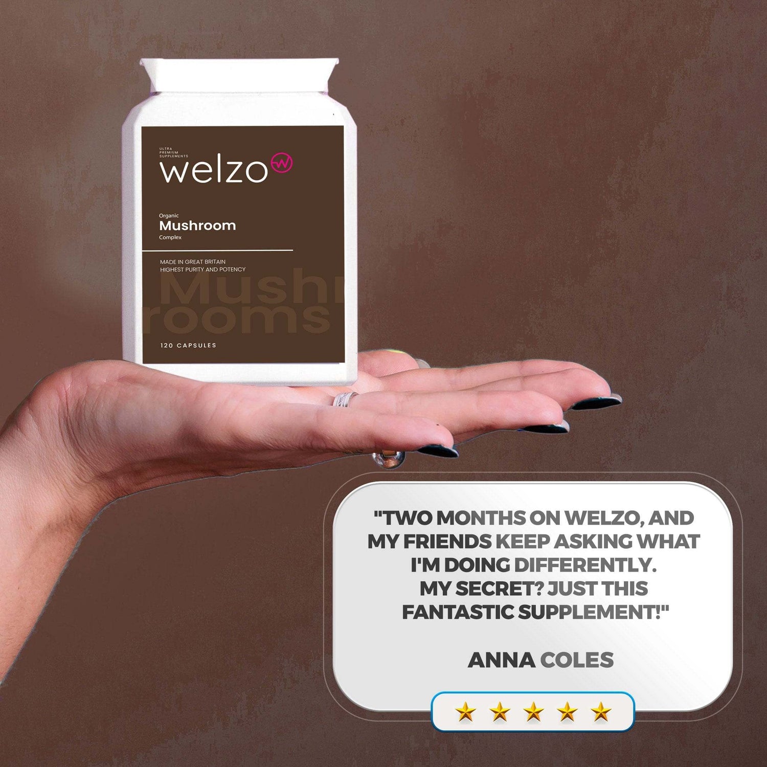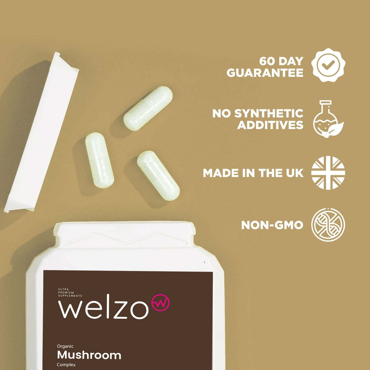 Преобразувайте уелнес рутината си с комплекс от органични гъби Welzo, капсулиран в удобни, лесни за вземане 120 капсули.