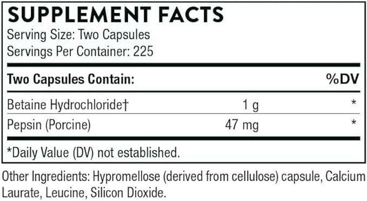 Betaine HCl & Pepsin, 450 capsules - Thorne Research
