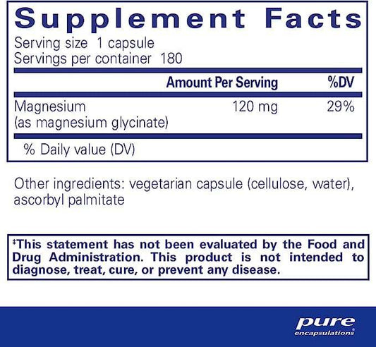 126 BeoordelingenLeverancier:Pure EncapsulationsMagnesium (glycinaat) 120 mg 180 doppen - Pure Encapsulations