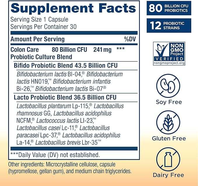Ultimate Flora, Probiotic Care Care, 80 miliardów żywych kultur, 30 kapsułek wegetariańskich - Odnowienie życia