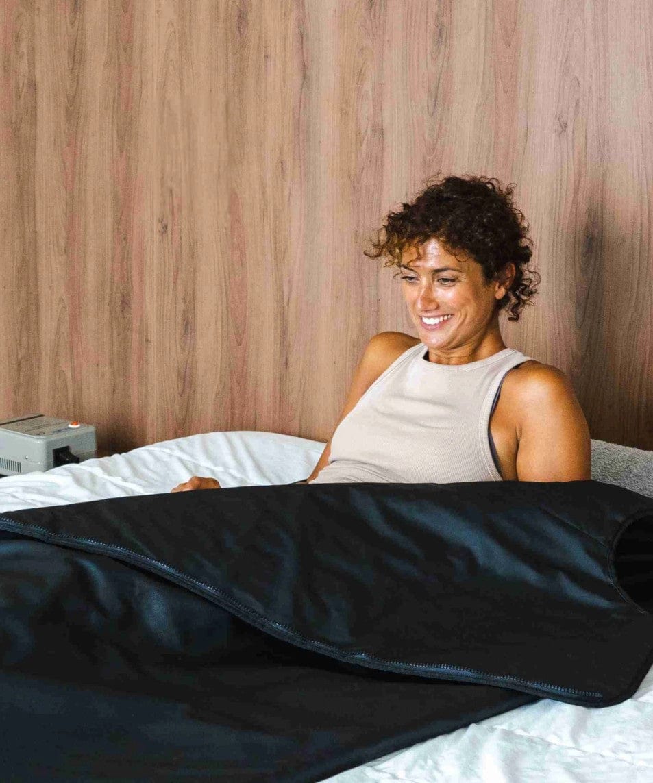 The Sauna Blanket uses infrared heat to lower cortisol and boost melatonin, activating deep relaxation for a more restorative sleep.